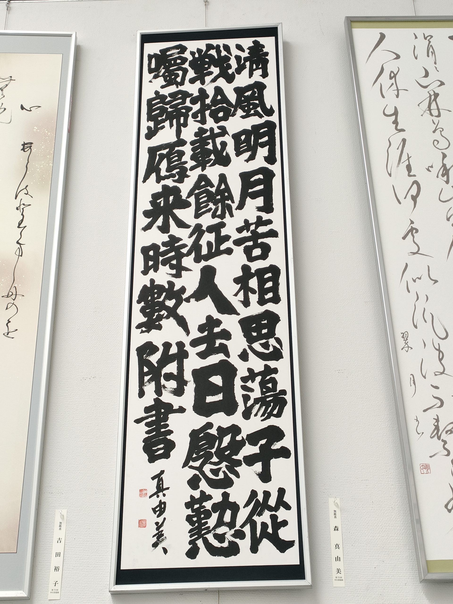 第73回中日書道展 2024年6月26日から6月30日まで、森の作品が愛知県美術館ギャラリー(愛知県芸術文化センター8F)に展示されました。 王維(669~761)の詩です。杜甫が放浪の末、人生最後の年に湖南で出会った名優、李亀年のお気に入りの詩の一つだそうです。 清風と明月に苦しくも相思う蕩子は戦に従きて十載の余なり征人の去く日に慇懃に嘱す帰る雁の来るときには数書を附けたまえと 出典:新唐詩選, 吉川幸次郎・三好達治著, 岩波新書, 2015 投稿者: licht@illus.biz licht@illus.biz のすべての投稿を表示 Skip back to main navigation