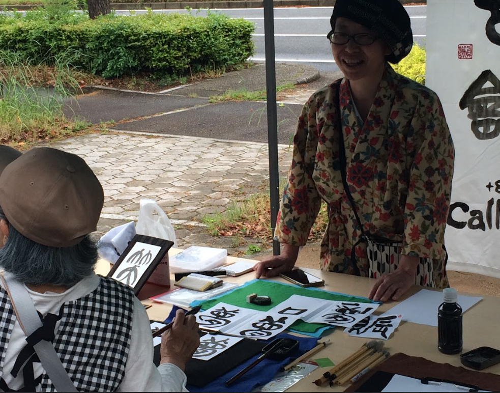 天候が定まらない5月だけに、5日は真夏日、10日は小雨模様となり、屋外で書道を行うには厳しい環境でした。開催当初は「今日は参加者がいないかもしれない」と心配しましたが、予想に反して多くの方にご参加いただきました。特に、幼児を連れたご家族には好評で、温かい交流のひとときとなりました。